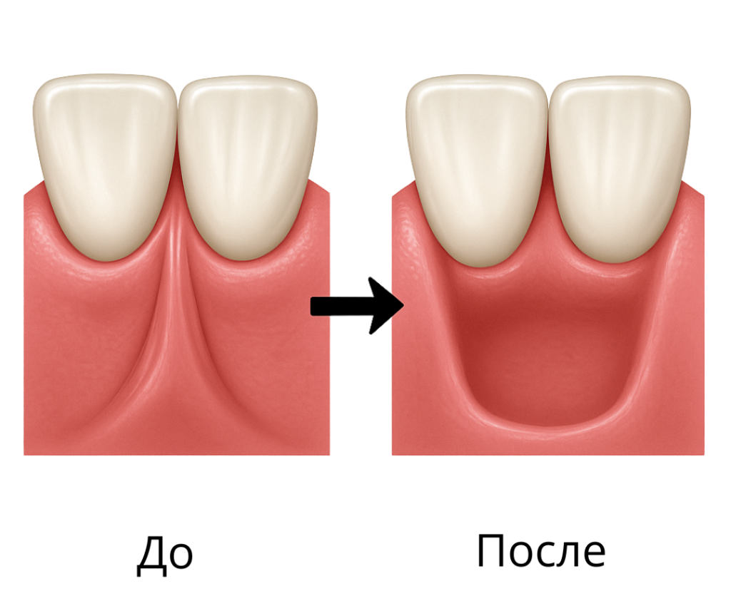 Это хирургическая процедура, при которой увеличивают пространство между губой и десной. Она проводится для того, чтобы улучшить фиксацию протезов, снизить риск заболеваний десен и создать оптимальные условия для дальнейшего лечения или имплантации зубов.